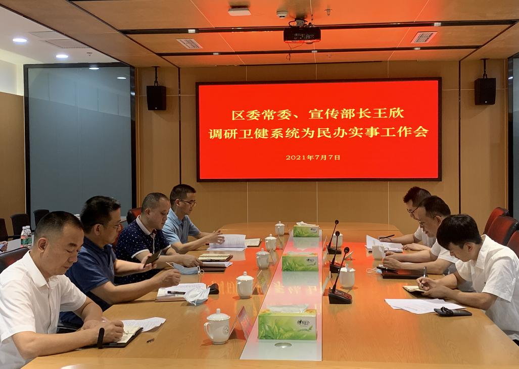 2021年7月7日下午,区委常委、宣传部长王欣到区中医医院调研卫健系统“我为群众办实事”工作,区卫健局相关负责人,区人民医院集团、区中医医院集团、区妇幼保健院相关负责同志陪同。